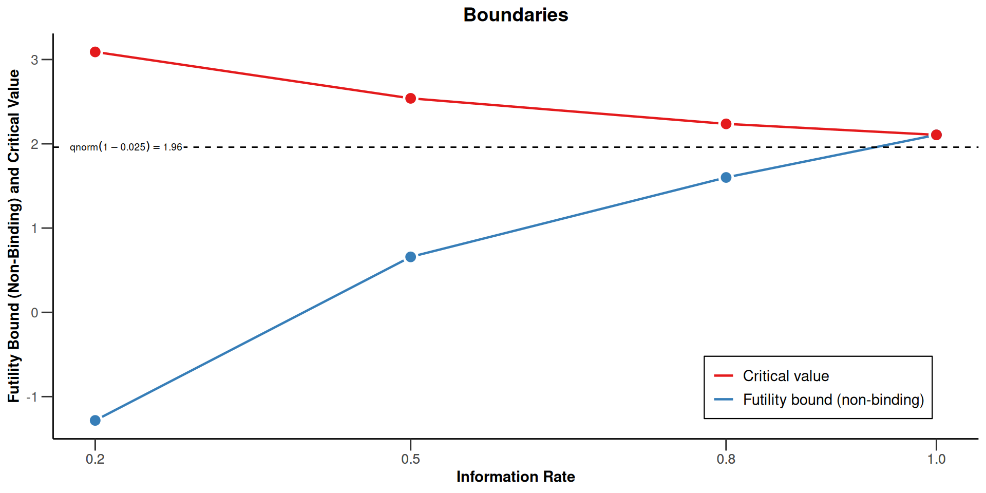 | Futility boundary (z-value scale) | 0 | -Inf | |